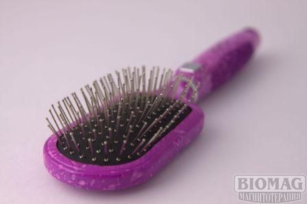 Расческа массажная с магнитными вставками  предназначена для ухода за волосами и кожей головы. В процессе расчесывания  волосы менее электризуются, происходит очищение от поврежденных и выпавших волос, осуществляется легкий массаж кожи головы. Использование расчески стимулирует рост волос, усиливает их природный блеск и эластичность.